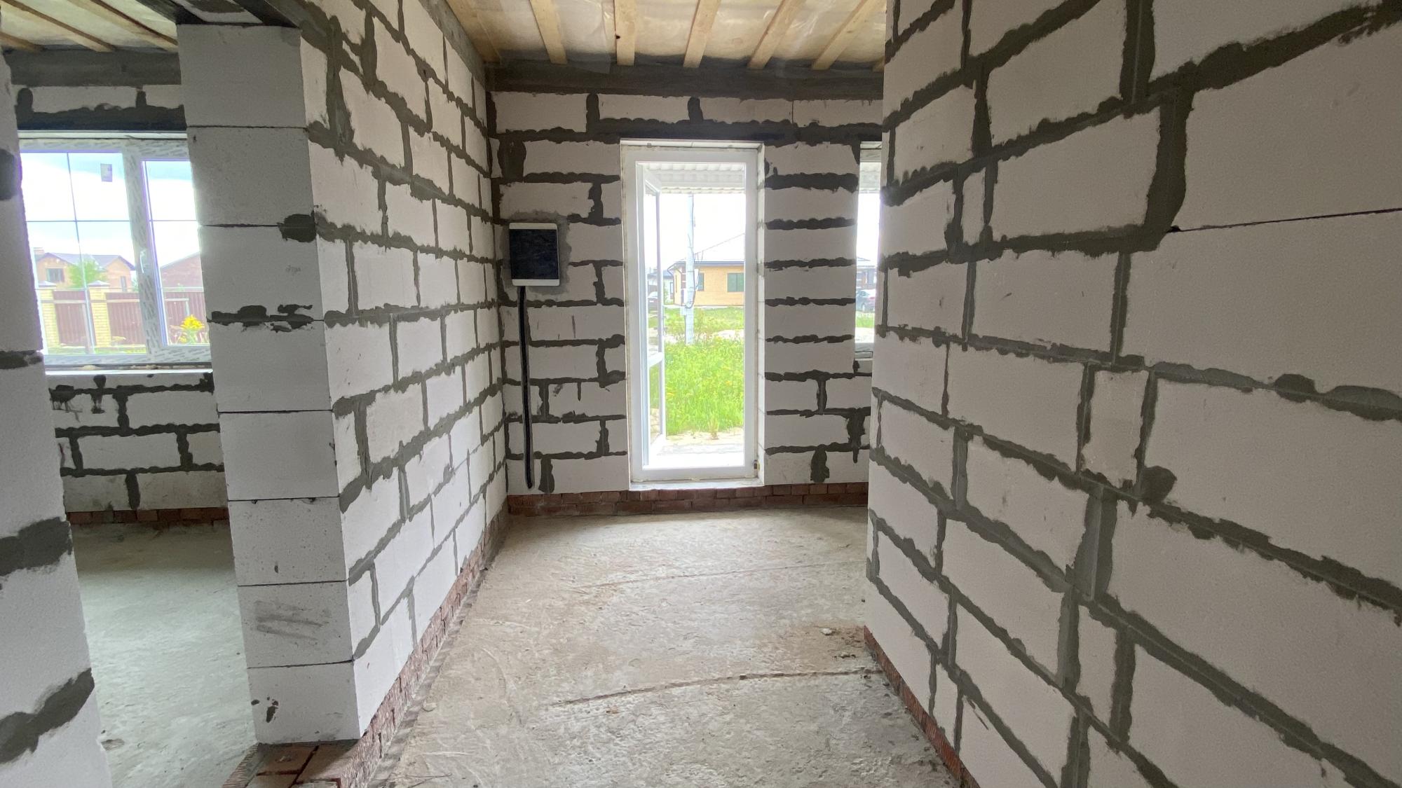Стены – газобетонные блоки, толщина внешних стен 30см + 10см утеплитель.